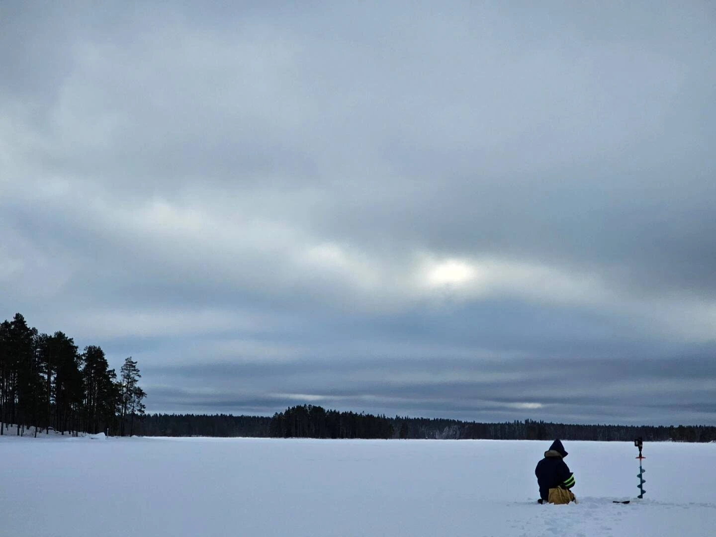• Varustaudu lämpimillä ja pitävillä kengillä (nastat), ja pukeudu lämpimästi - paikallaan istuessa voi tulla kylmä. Suojaudu tuulta vastaan istumalla selkä tuulta vasten.